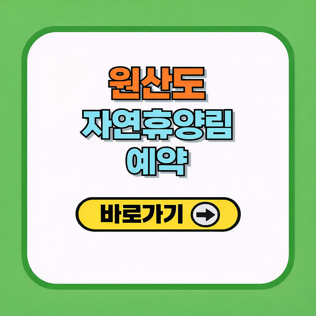 예약은 숲나들e 공식 사이트에서만 진행되며, 예약 오픈 시간에 맞춰 접속하면 원하는 날짜를 확보하기 수월합니다. 원산도 자연휴양림 예약 사이트는 아래에서 바로 확인해보세요.