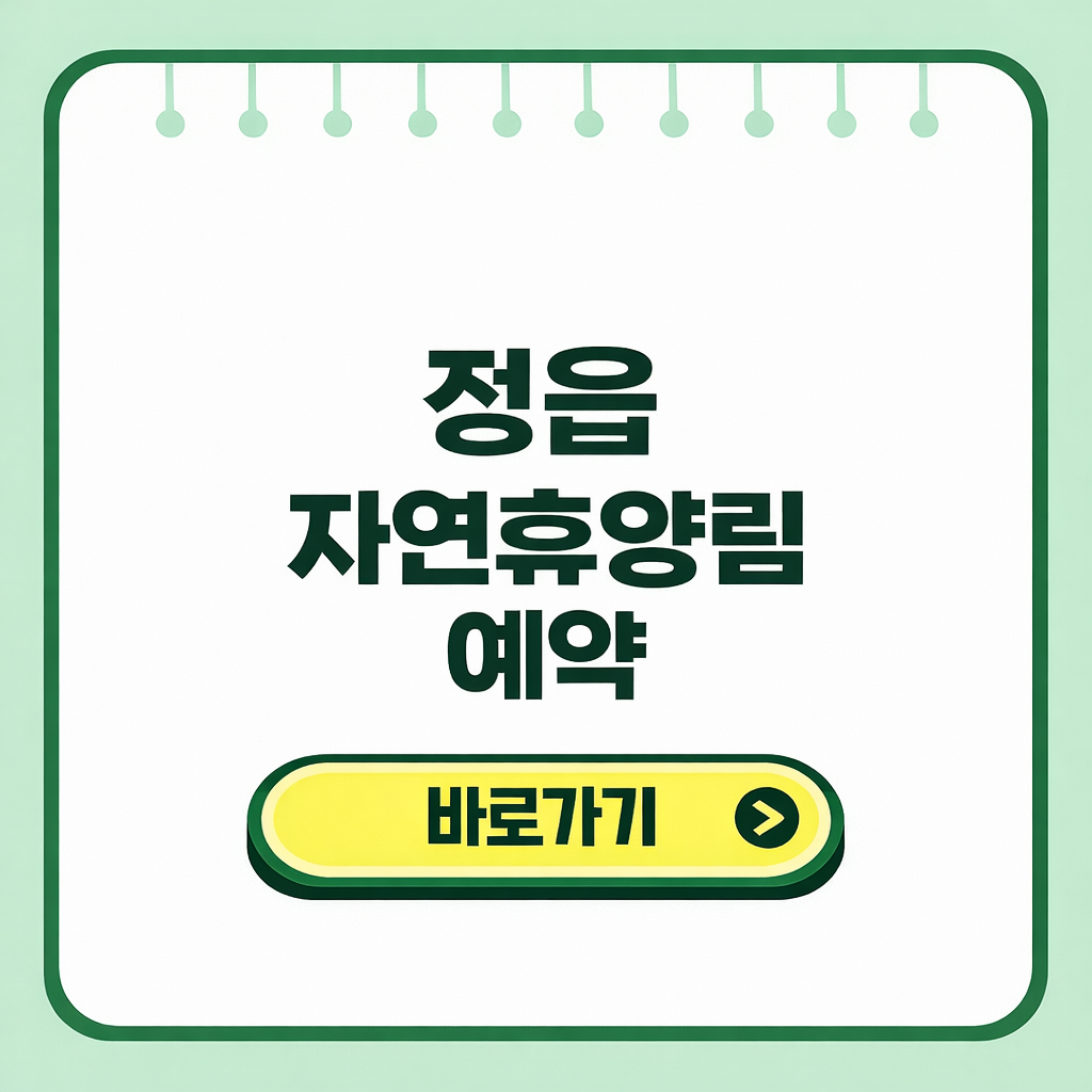 정읍 자연휴양림은 사전 예약제로 운영되며 원하는 날짜 이용을 위해서는 예약 오픈 시간에 맞춰 준비하는 것이 중요해요. 예약 방법은 간단하며 온라인으로 빠르게 진행할 수 있습니다. 정읍 자연휴양림 예약은 아래에서 바로 확인해보세요.